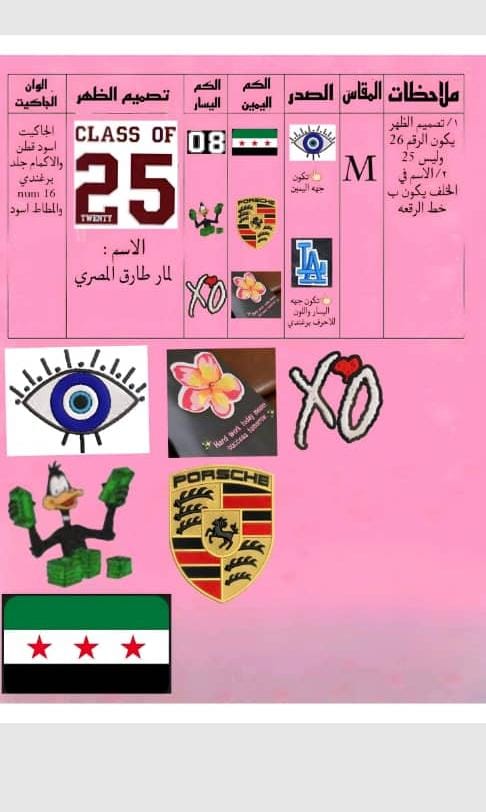 صممي طلبك نفس كذا ورفقي الصورة مره وحده 👇🏼 السعر يشمل باتش ب الكم اليمين باتش ب الكم اليسار والخلف كامل وحروف من الامام